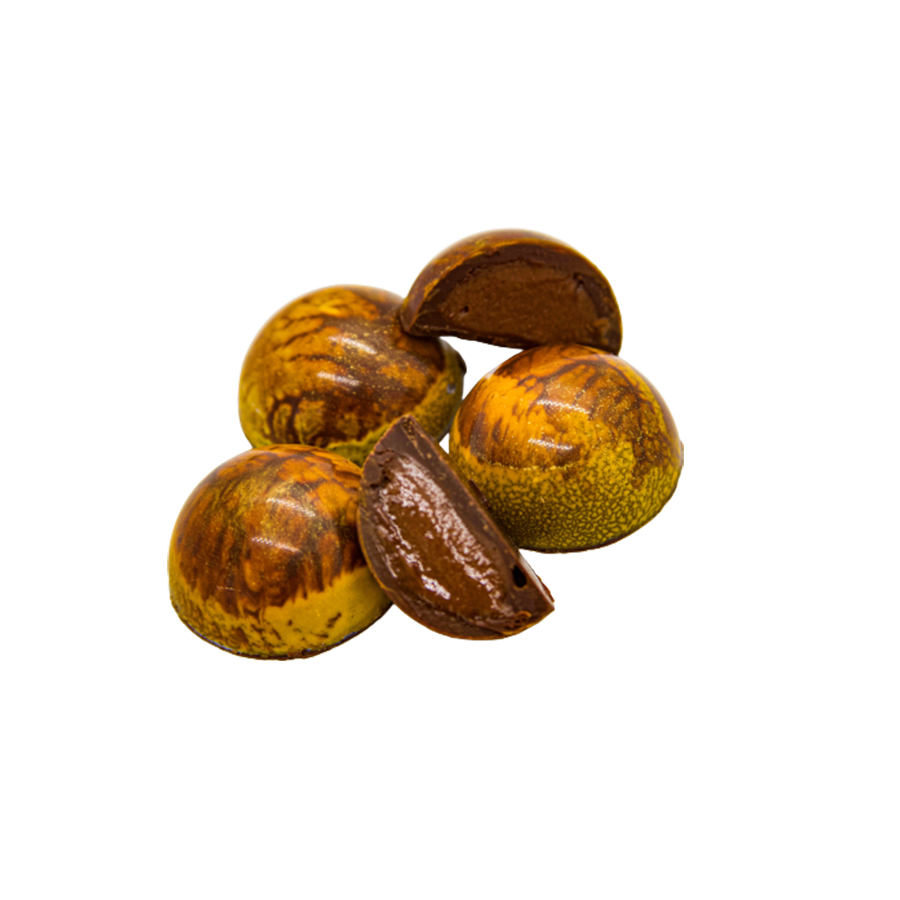 Una delicada capa de chocolate que envuelve un relleno cremoso y delicioso perfecto para consentirse, para ocasiones especiales, y para regalar un pedacito de felicidad con sabor a chocolate.